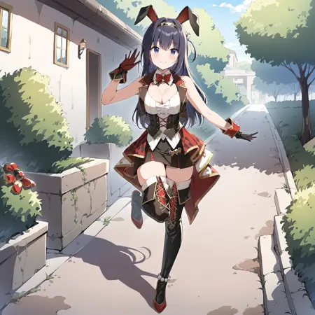 agasemana, 1girl,cogdx1 vest, cogdx hairband, cogdx thighboots, cogdx1 skirt, cogdx1 gloves, fake animal ears,
