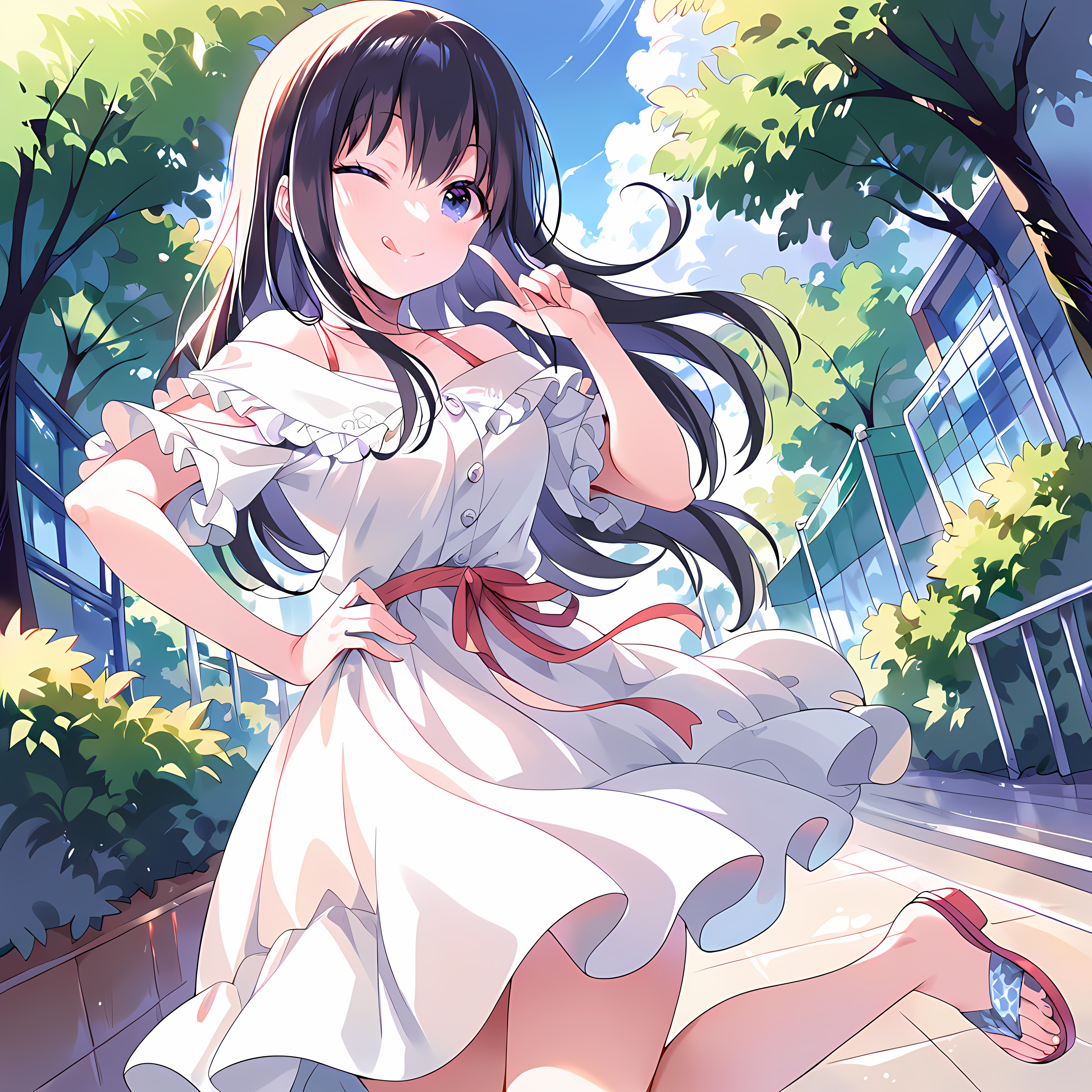 nagasemana, 1girl, nagasemana off-shoulder dress, nagasemana sandals,
