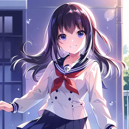 nagasemana, 1girl, nagasemana sailor collar shirt, nagasemana skirt, nagasemana kneehighs, loafers,