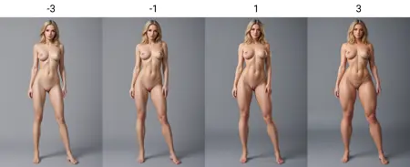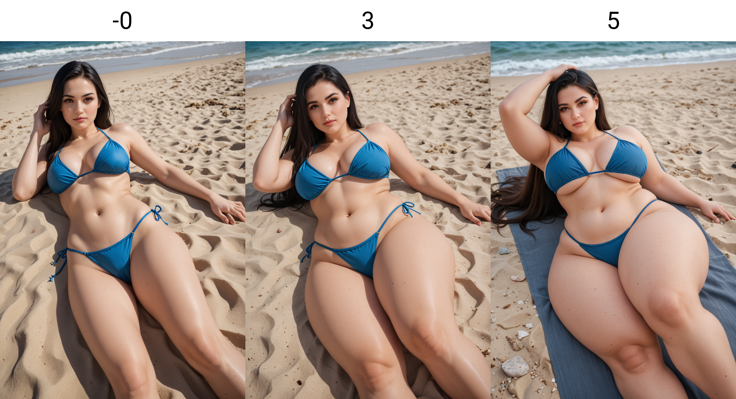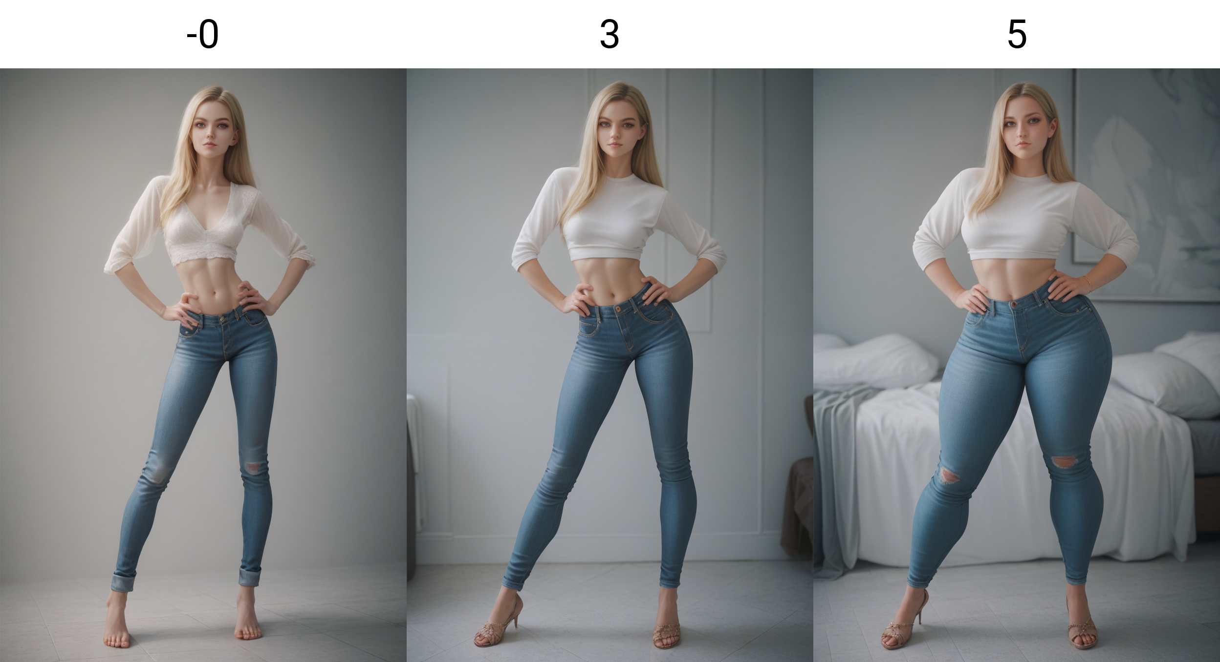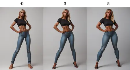허벅지 두께를 조정하는 슬라이더는 학습이 어렵습니다. 결과는 괜찮지만, 나중에 개선된 버전으로 업데이트할 예정입니다. 현재는 사소한 조정만 가능하지만, 이로도 충분할 수 있습니다.