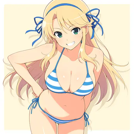 IllustriousXL 활성화 태그는 "katsuragi(sk)", 외모 태그는 "긴 헤어, 황금색 헤어, 큰 가슴, 녹색 눈"이며, "파란색 눈"의 대안도 포함됩니다. 옷 태그는 "defaultoutfit, 파란 치마, 오픈 코스튬, 넥타이, 오픈 셔츠, 셔츠, 파란색 넥타이, 꽃잎, 리본, 짧은 소매, 배꼽, 느슨한 양말, 갈색 신발"입니다.