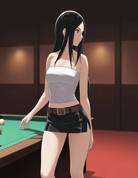 코트 없음: 튜브탑, 검은 치마, 마이크로스커트