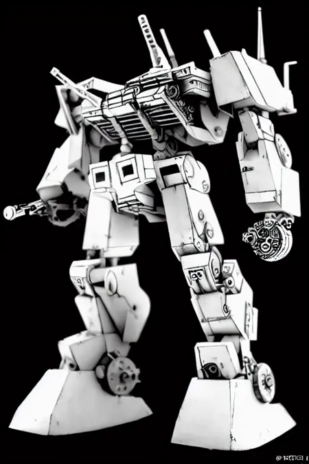 for example try prompts like "MechBattleTechClassicTR3025 in action on a battlefield with a city in the background"