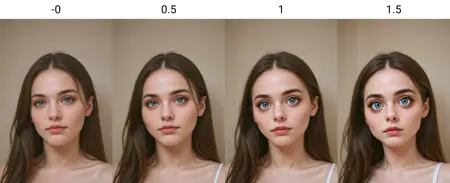 눈 크기를 조정하는 슬라이더는 눈을 작게 만드는 데는 별로 효과가 없습니다. 그러나 눈을 크게 만드는 데는 훌륭하게 작동합니다. 무게를 0에서 약 2까지 조정해도 이미지에 변화가 없습니다.