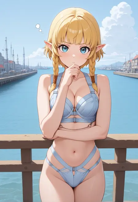 又一款为内衣爱好者准备的模型!同样,可提示是否包含garter belt,数据集中包含带与不带它的多种图像,均可良好生成。同时加入了thighhighs标签,应能重现相应效果。