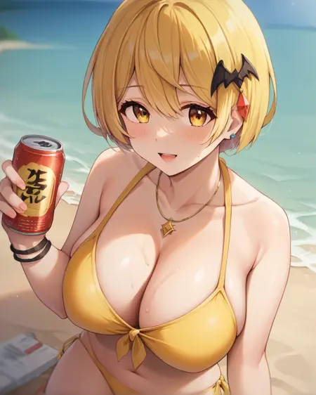 触发词:yozora_mel,金发,大胸,发饰,手套,肚脐,