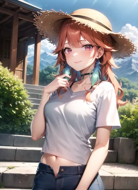 kiaradef, kiarafancy, "kiaracountry, white shirt, shorts, straw hat"