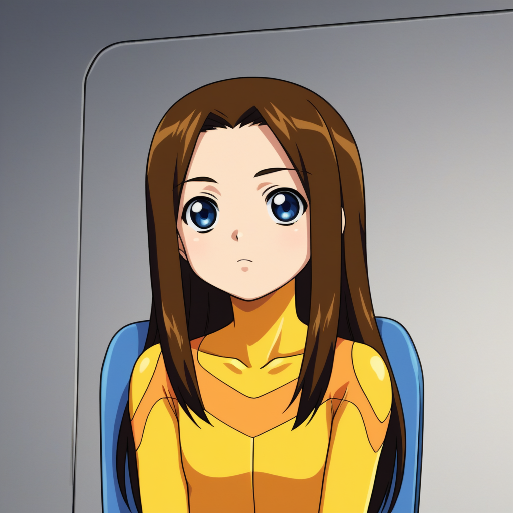 Misha Miramond, 1girl, solo, long hair, brown hair, blue eyes,
