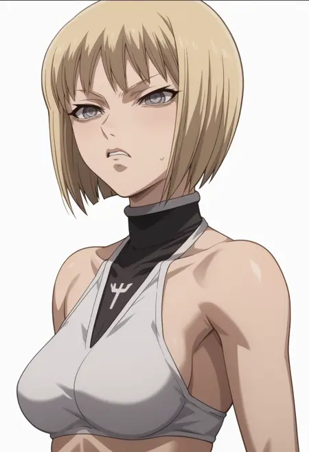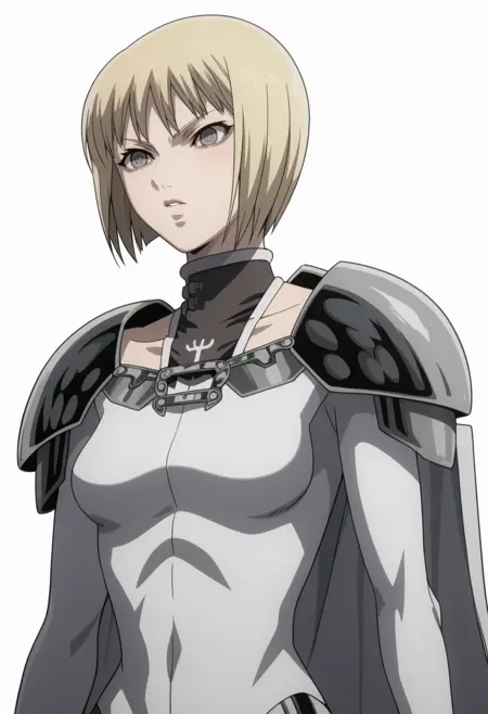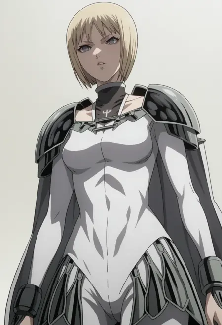 clare, bodysuit, cape, pauldrons, grey eyes,