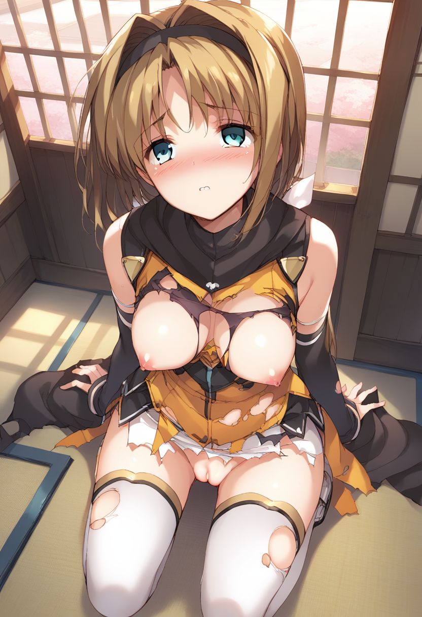 破れた衣装:ハルカ、黒いヘアバンド、太ももまでの靴下、肘まで手袋、(破れた衣装:1.1)