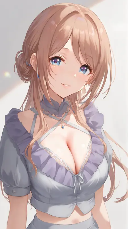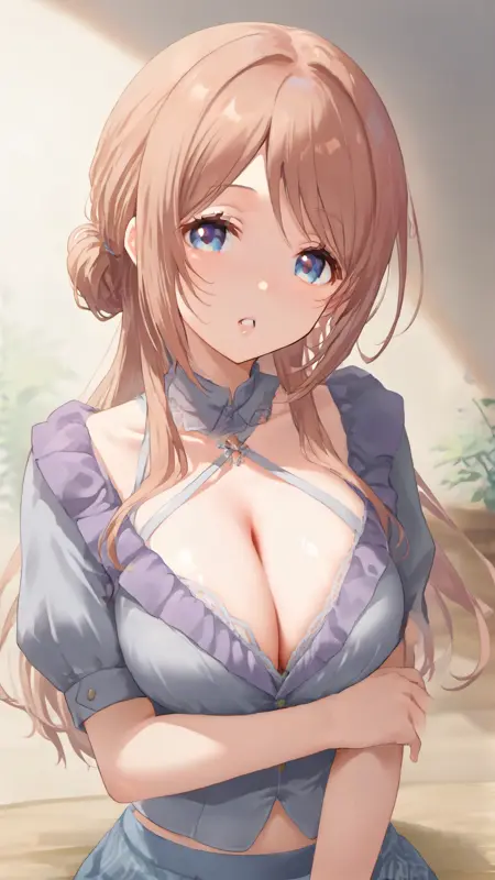 himesaki_rinami, hair bun, eyebrows visible through hair, solo, blue eyes, 1girl, medium_breasts