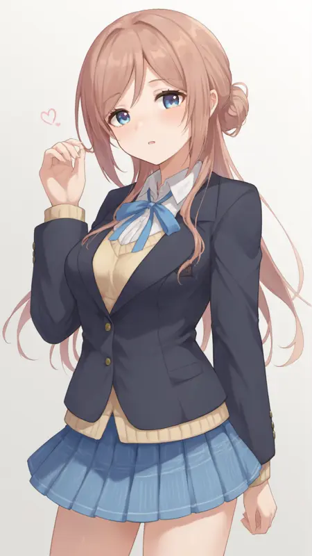 캐릭터를 학교 복장(다름 R 및 SR 복장에 해당)으로 생성하려면 다음 프롬프트를 포함하세요:
