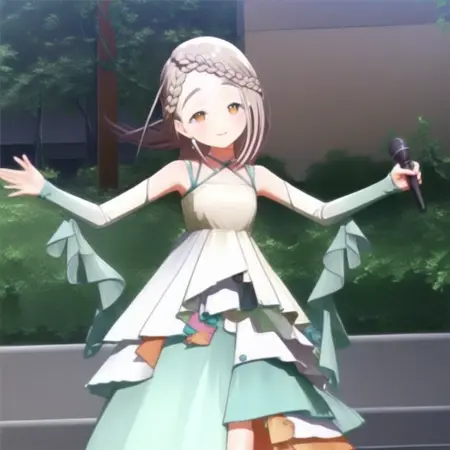 However, training for 20 epochs seemed to be excessive, and since each image was captured from concert scenes, the characters always had microphones in their hands. I had to select an earlier point to avoid overfitting. I found that 14 epochs were the most suitable. (I will also upload the version trained for 20 epochs.)