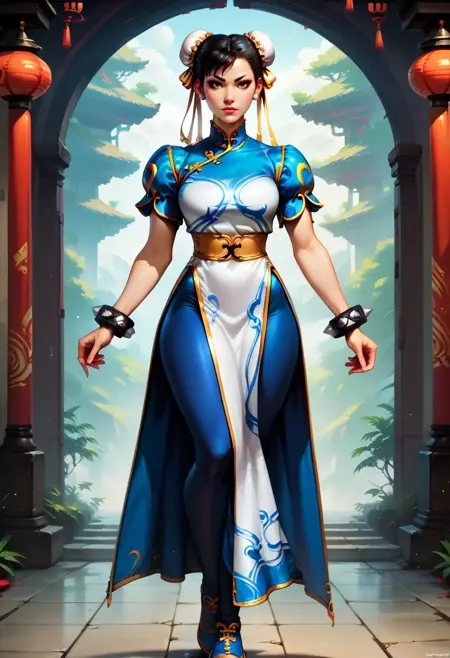 Casual prompt: 1girl, chun-li (\street fighter)\, black hair, brown eyes, makeup, eyelashes,