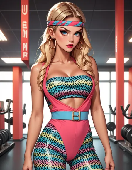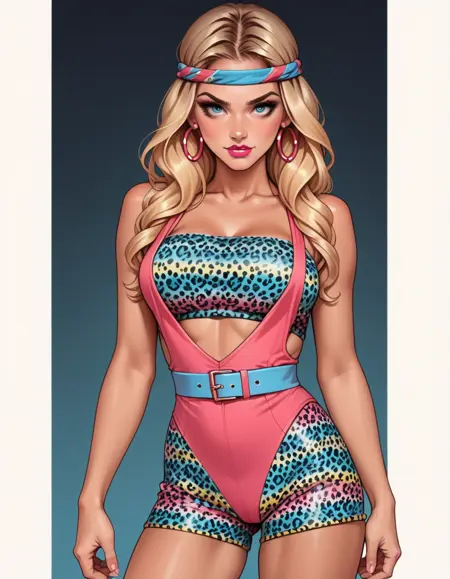hud_ltrd_81,headband, leopard print tube top, shorts, pink leotard, sleeveless, blue belt