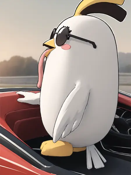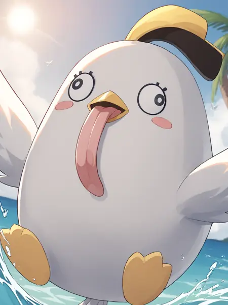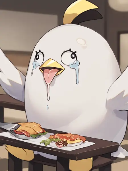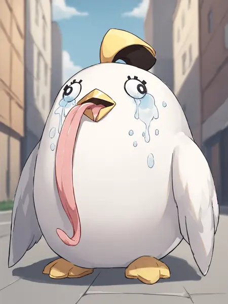 source_furry, open mouth, tongue out, no humans, (white bird:1.3), duck, blush stickers, animal focus, (peroro (blue archive):1.5),