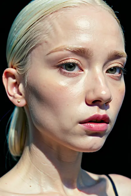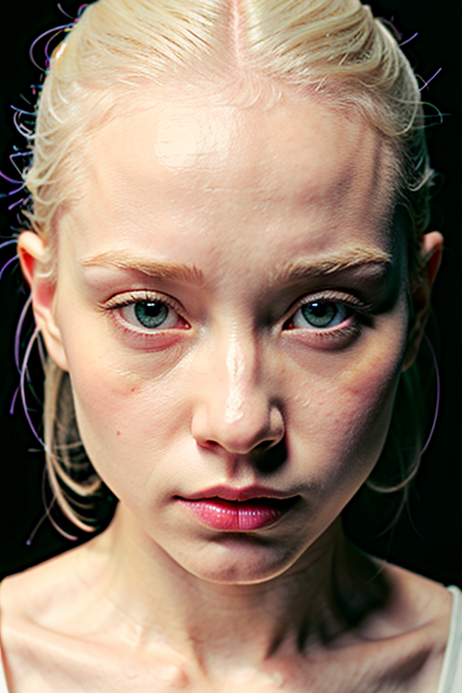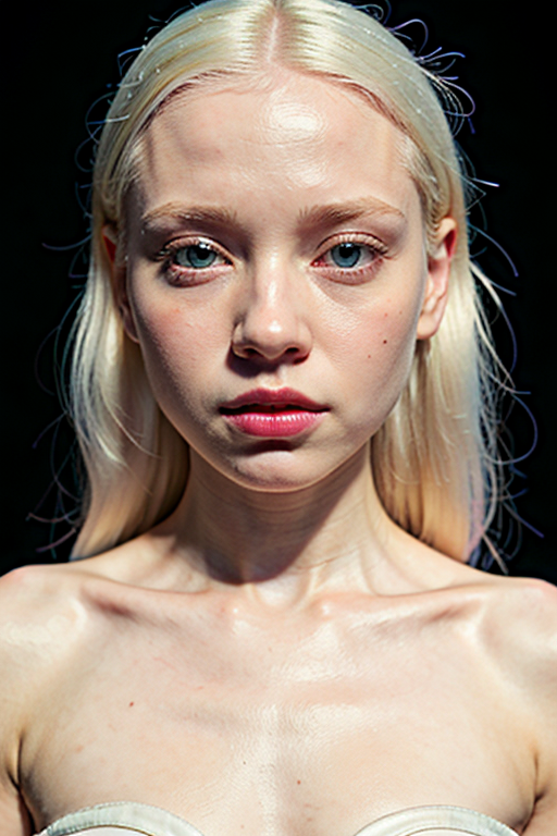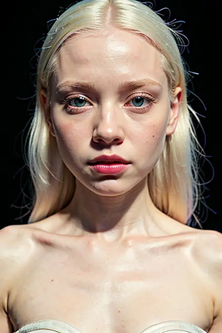 아름다운 알비노 소녀, 눈은 연한 핑크색, 눈썹과 속눈썹은 흰색