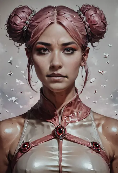 Rose的 特征 包括:粉红色头发、双发髻、棕色眼睛(为获得更准确效果,请在提示中添加这些特征)。