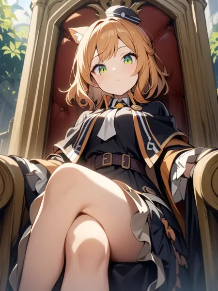 - Sometimes you'll need these keywords: black dress, green eyes, white locks.
