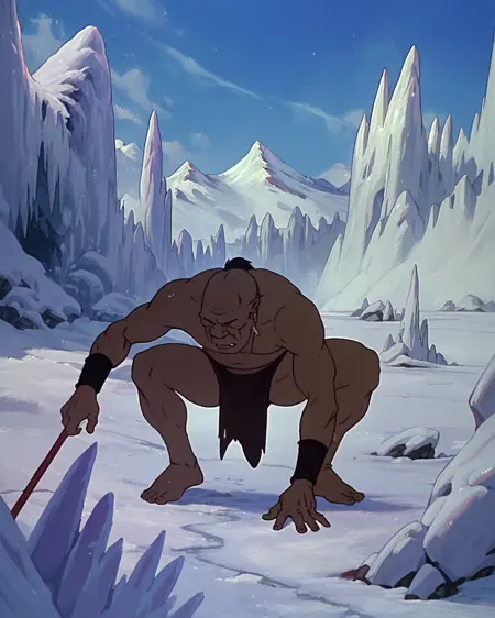 Subhuman, colored skin, Green or grey skin, loincloth, spear