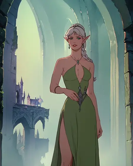Trained on stills from the movie by Ralph Bakshi and Frank Frazetta. Art done by James Gurney, Thomas Kinkade, Peter Chung.