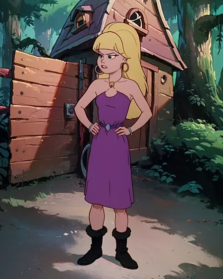 Princess Teegra, purple bikini, black hair, long hair, green eyes