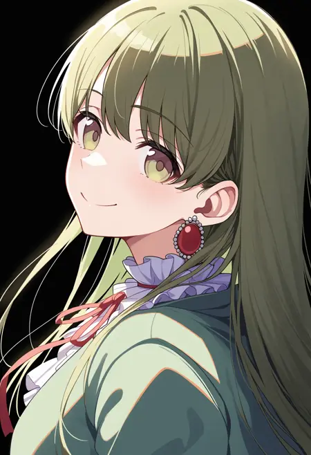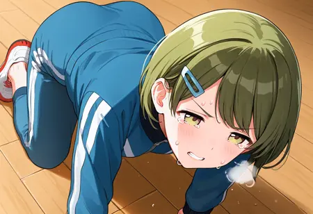 n_nanakusa, 1girl, solo, short hair, green hair, bangs, green eyes