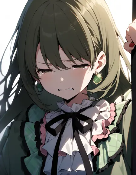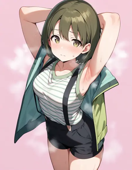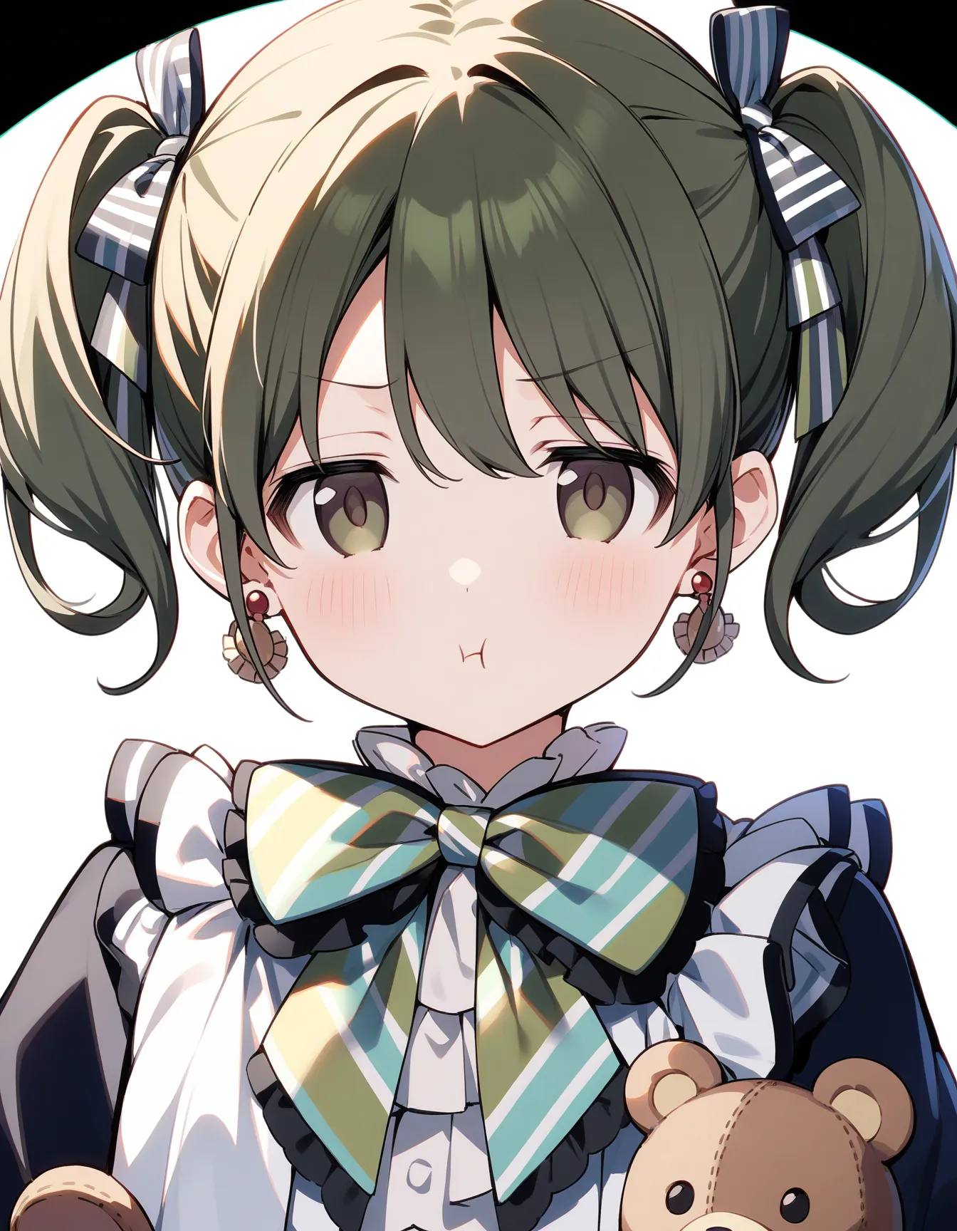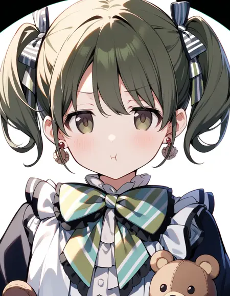 n_nanakusa, 1girl, solo, short hair, green hair, bangs, green eyes