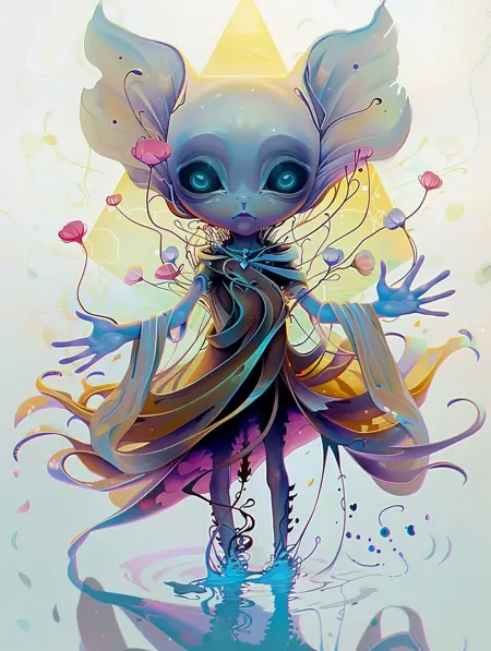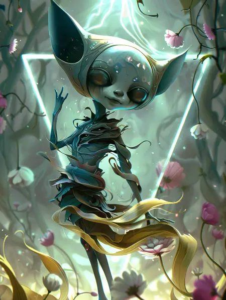 여성, 큰 귀, 마법사, 기하학적, 하이브리드, 외계인