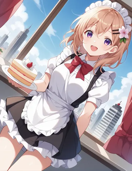 触发词:hoto cocoa, 1girl, 中长发, 棕发, 紫色眼睛