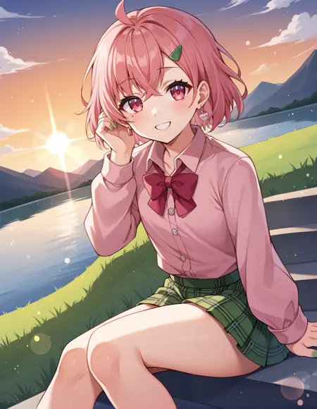 트리거 단어: sasaki saku, 1girl, virtual youtuber, pink hair, multicolored hair, short hair, ahoge, pink eyes, green nails, mole under eye