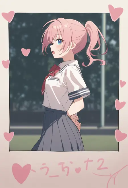 若添加border、english text、character name、dated、artist name、signature、heart等元素,可能会显得杂乱,建议根据喜好调整。
