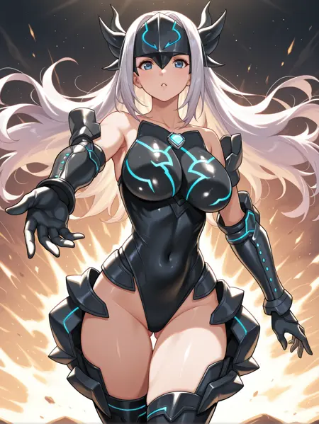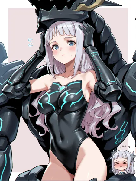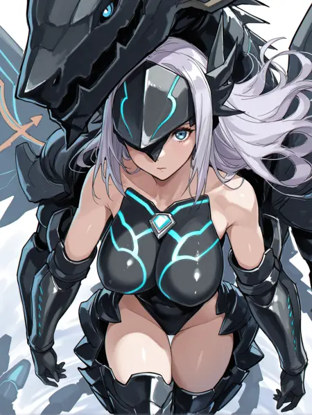 タグ(衣装): 黒い鎧、額当て、機械ドラゴン、ガントレット