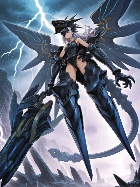 タグ(衣装追加、メカ): メカ娘、機械ドラゴン、黒い機械の翼、黒い機械の脚