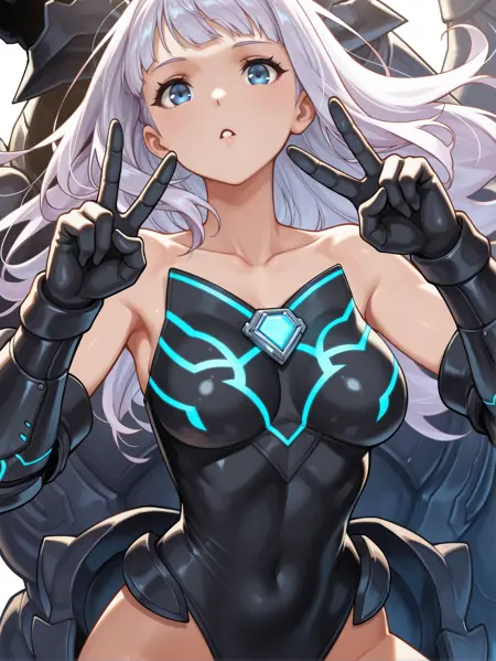 タグ(衣装): 黒い額当て、黒いガントレット、黒いハイレグレオパード