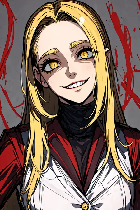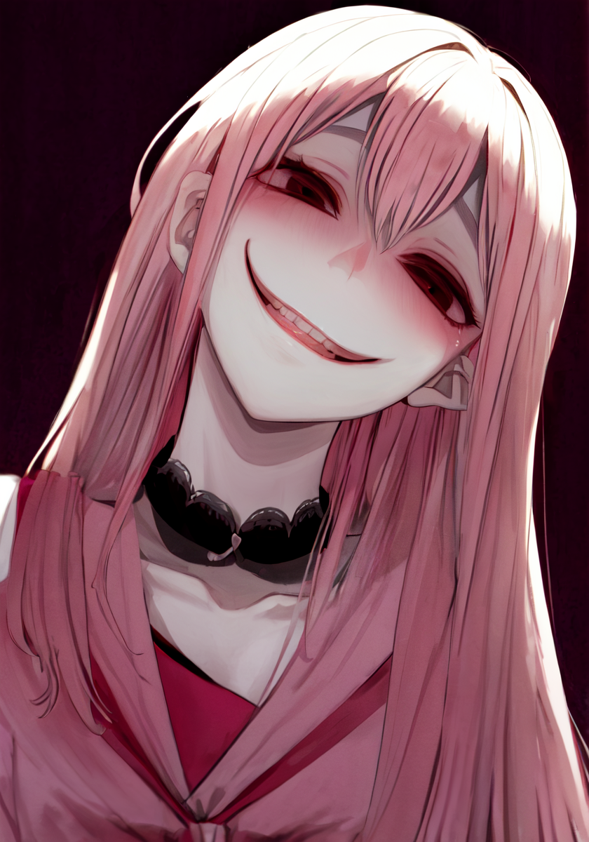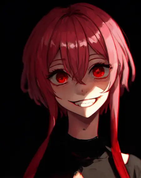 masterpiece, best quality,lora:last-000005:0.6, yameroyandere, crazy eyes, yandere, red background, constricted pupils