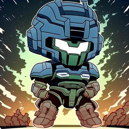 masterpiece, character_name dark background 위에 위협적으로 서 있는 모습, 뒤로 번개 치는 시점, 두꺼운 검은 테두리