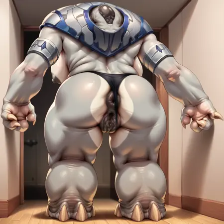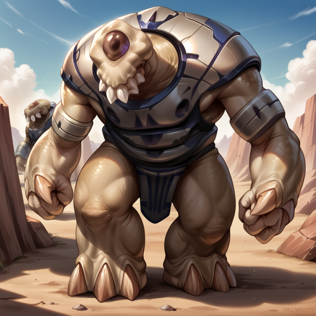 alien, creature, row of fangs, drinol, no humans, wrist claws, single cyclopes eye, full body