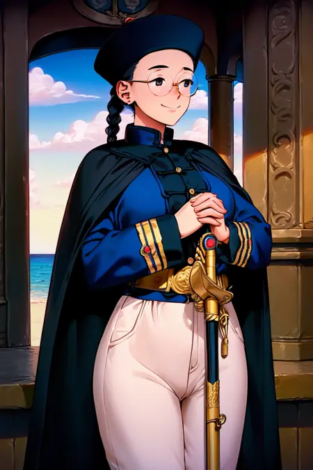 black cape,cloak, 수군 제독이 착용하는 검은 긴 망토