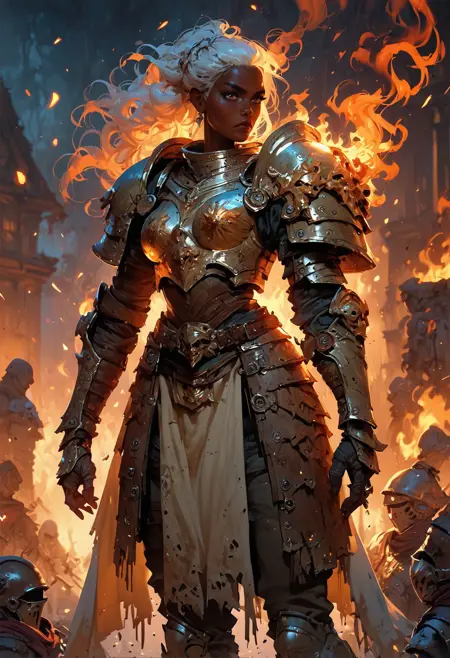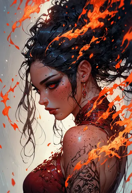ํธ๋ฆฌ๊ฑฐ ๋จ์ด: ์ด LoRA๋ ํธ๋ฆฌ๊ฑฐ ๋จ์ด๊ฐ ํ์ ์์ต๋๋ค. ๊ทธ๋ฅ ์ ์ฉํ๊ณ ์ฆ๊ธฐ์ธ์. ํ์ง๋ง ํ๋กฌํํธ์ "flames, fire" ๋ฑ ๋ถ๊ณผ ๊ด๋ จ๋ ๋จ์ด๋ฅผ ์ฌ์ฉํ๋ฉด ๋ ์ข์ ๊ฒฐ๊ณผ๋ฅผ ์ป์ ์ ์์ต๋๋ค.