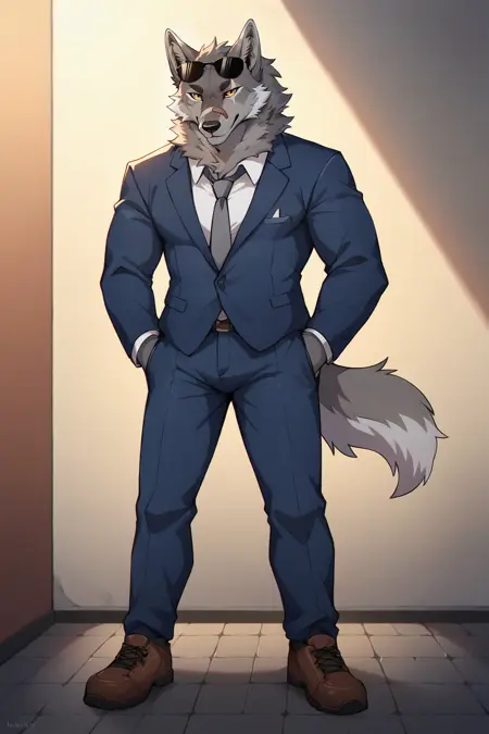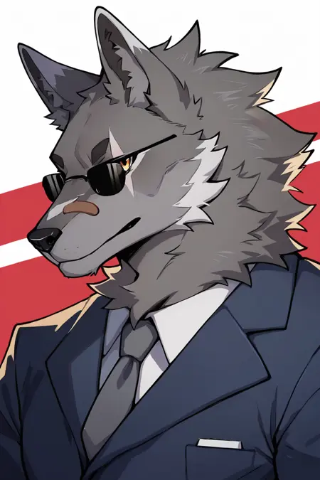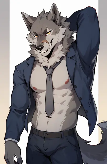 canid, canine, canis, mammal, anthro, wolf, black nose, grey body, grey fur, white fur, golden eyes, facial tuft, white facial hair, neck tuft, fluffy neck, ((hanunuewolf)),