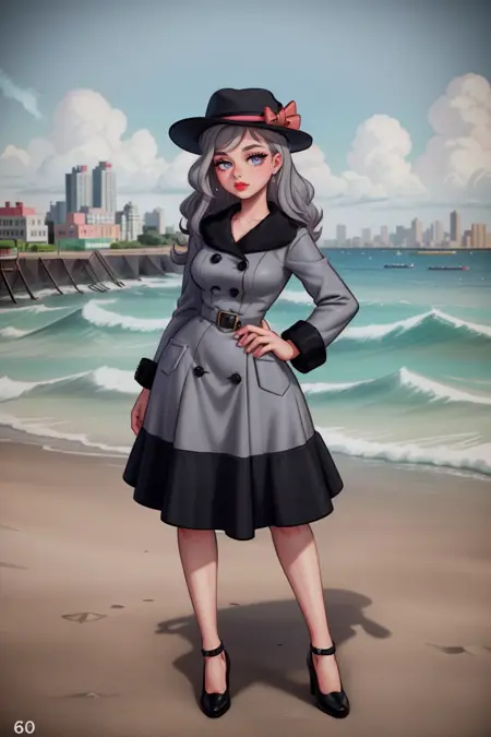 这是一个适用于1950年代外套与帽子搭配的LoRA,按钮部分可能有些难以控制,但总体而言这是一个优秀的模型,再次预告即将推出的完整1950年代时尚LoRA。
