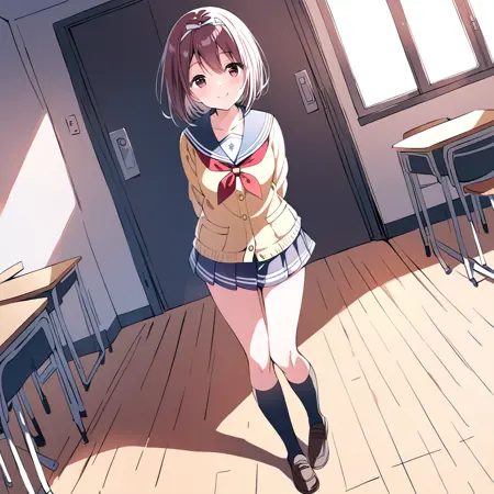 ibukinagisa, 1girl, ibuk 학교 복장, ibukcasual 헤어밴드, ibukschool 무릎높이 양말, ibukschool 신발,