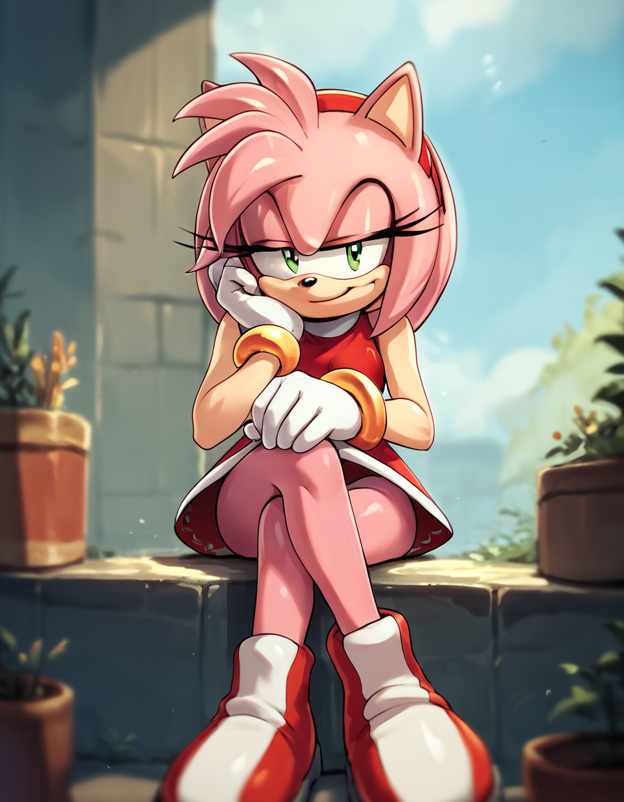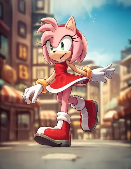 애미 로즈는 생기 있고 단단한 하이에그호그로, 그녀의 상징적인 피코 피코 해머를 놀라운 힘으로 휘두른다. 그녀는 소닉 더 헤지호그에게 깊이 빠져 있어, 자신의 충성을 증명하기 위해 종종 대담한 모험을 떠난다. 활기찬 성격에도 불구하고, 애미의 강한 충성심과 용기는 그녀를 강력한 동맹으로 만든다. 항상 낙관적인 그녀는 사랑과 우정의 힘을 믿는다. 애미의 변함없는 정신과 끈기는 어떤 도전에도 절대 포기하지 않게 한다.