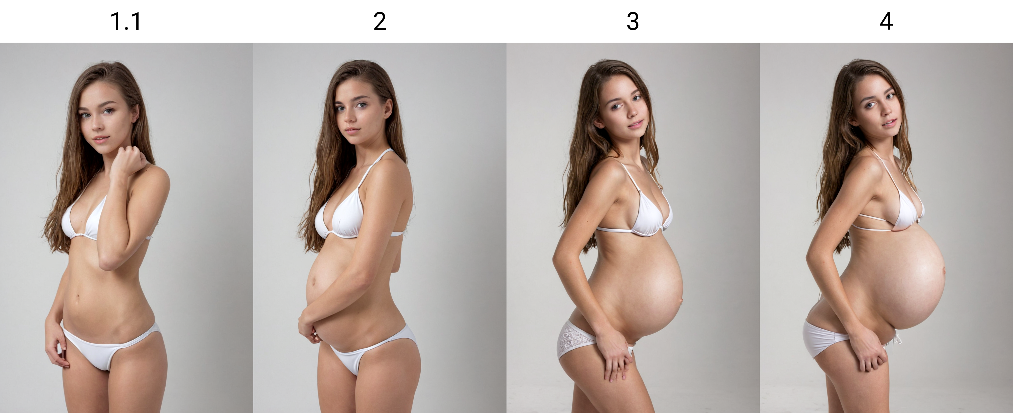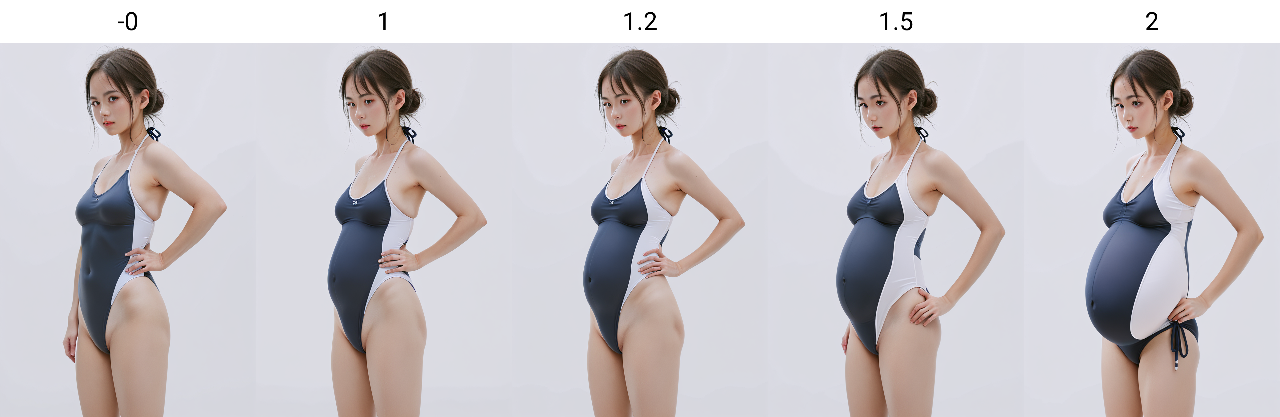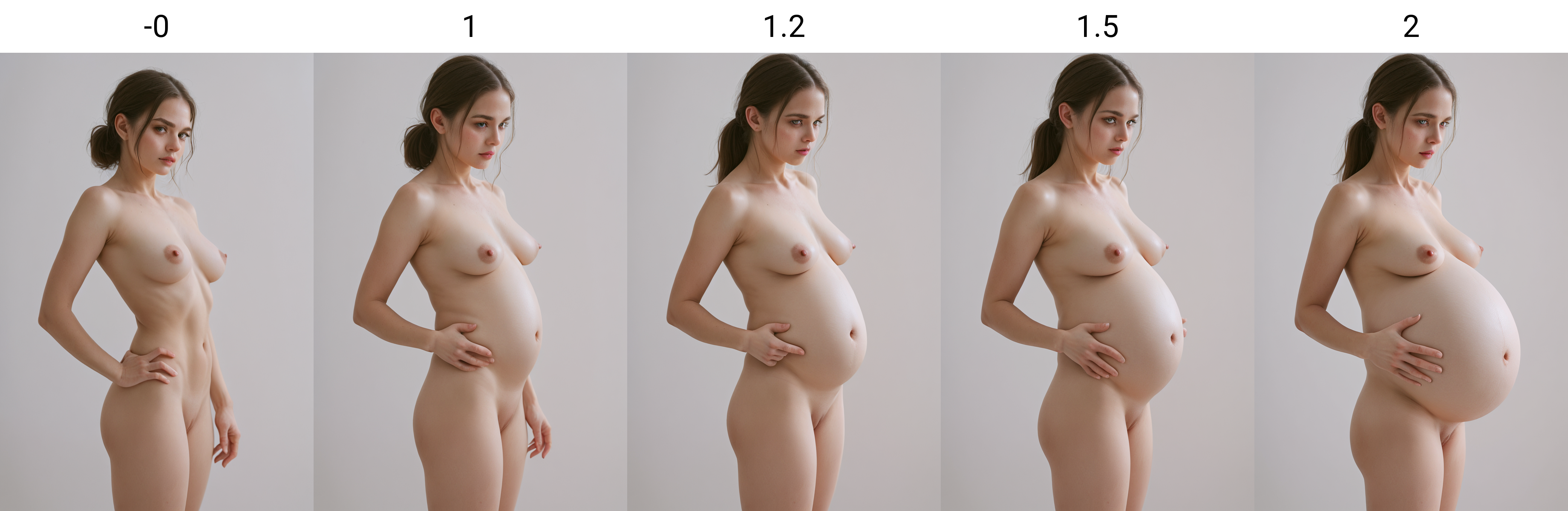 Infinite pregnancy control with this slider, can make more or less any size. Minimal picture impact unless you drastically adjust weight.