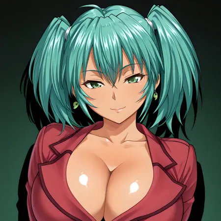 アクティベーションタグは「ryofu housen」、外見タグは「緑の髪、ツインテール、緑の目、大きな胸、黒肌」
