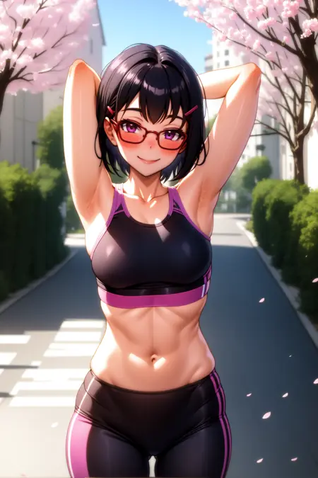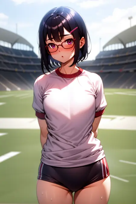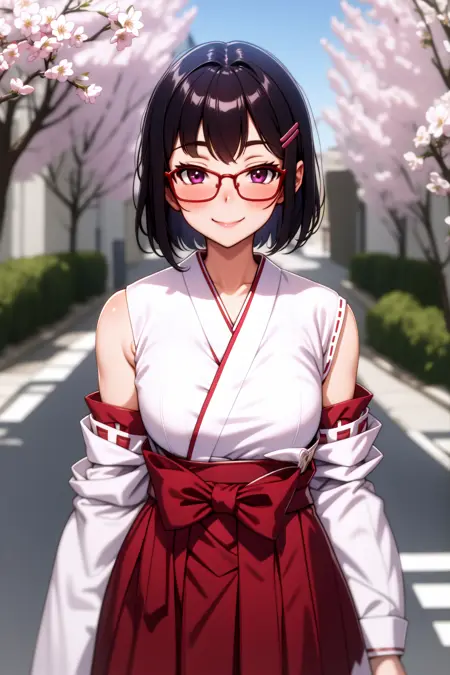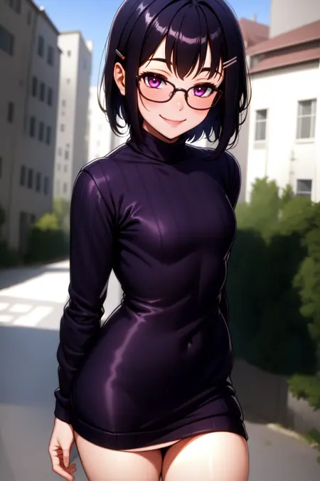 外貌:索娜,紫色眼睛,黑色短发,戴眼镜,发夹