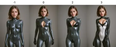 スライダーで胸元の深さを調整できます。サイズが指定されていない場合、胸を大きくします。