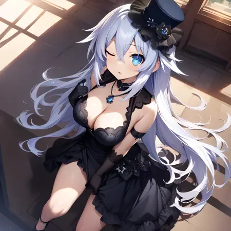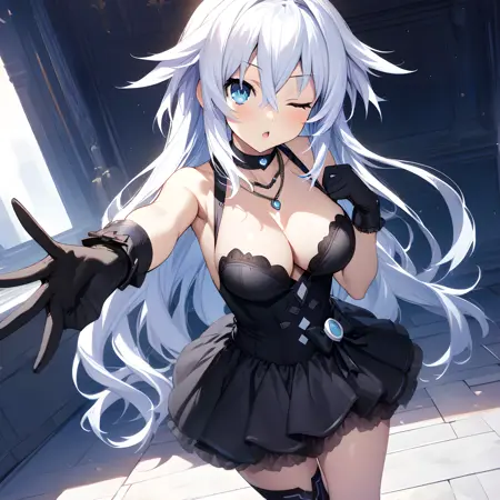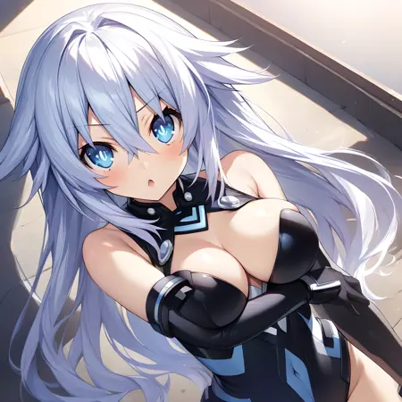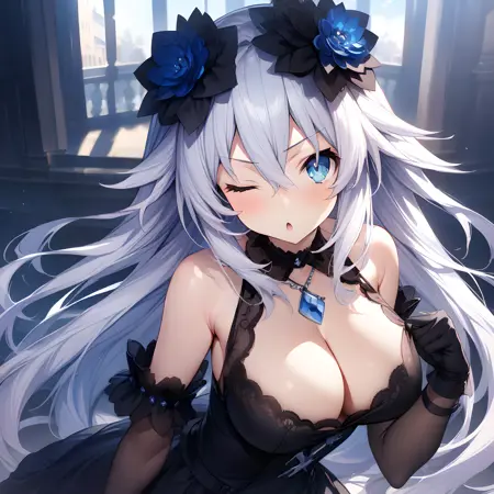 activation tag is "black_heart(neptunia)", appearance tag is "white hair, blue eyes, symbol shaped pupil, power symbol,"