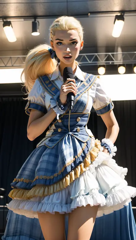 school outfit: blue blazer, white shirt, necktie, skirt, preppy